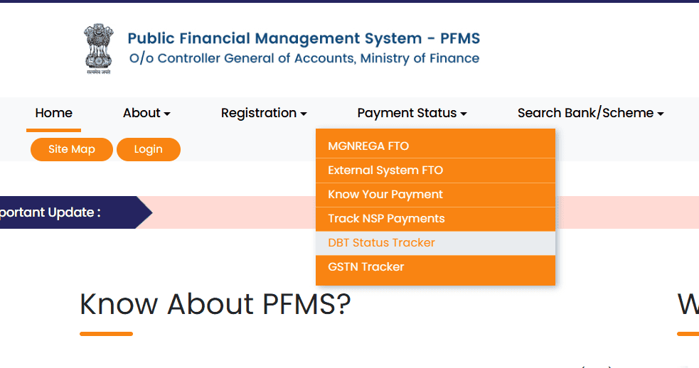 Ans- पेमेंट स्टेटस pfms.nic.in पर डीबीटी ट्रैकर पर क्लिक करके चेक करे