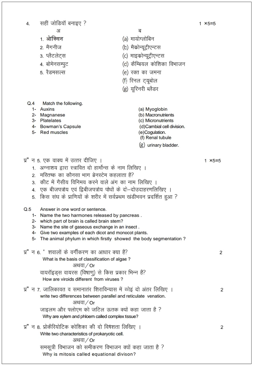 एग्जाम नाम एमपी बोर्ड जीव विज्ञान   अर्धवार्षिक पेपर 2025