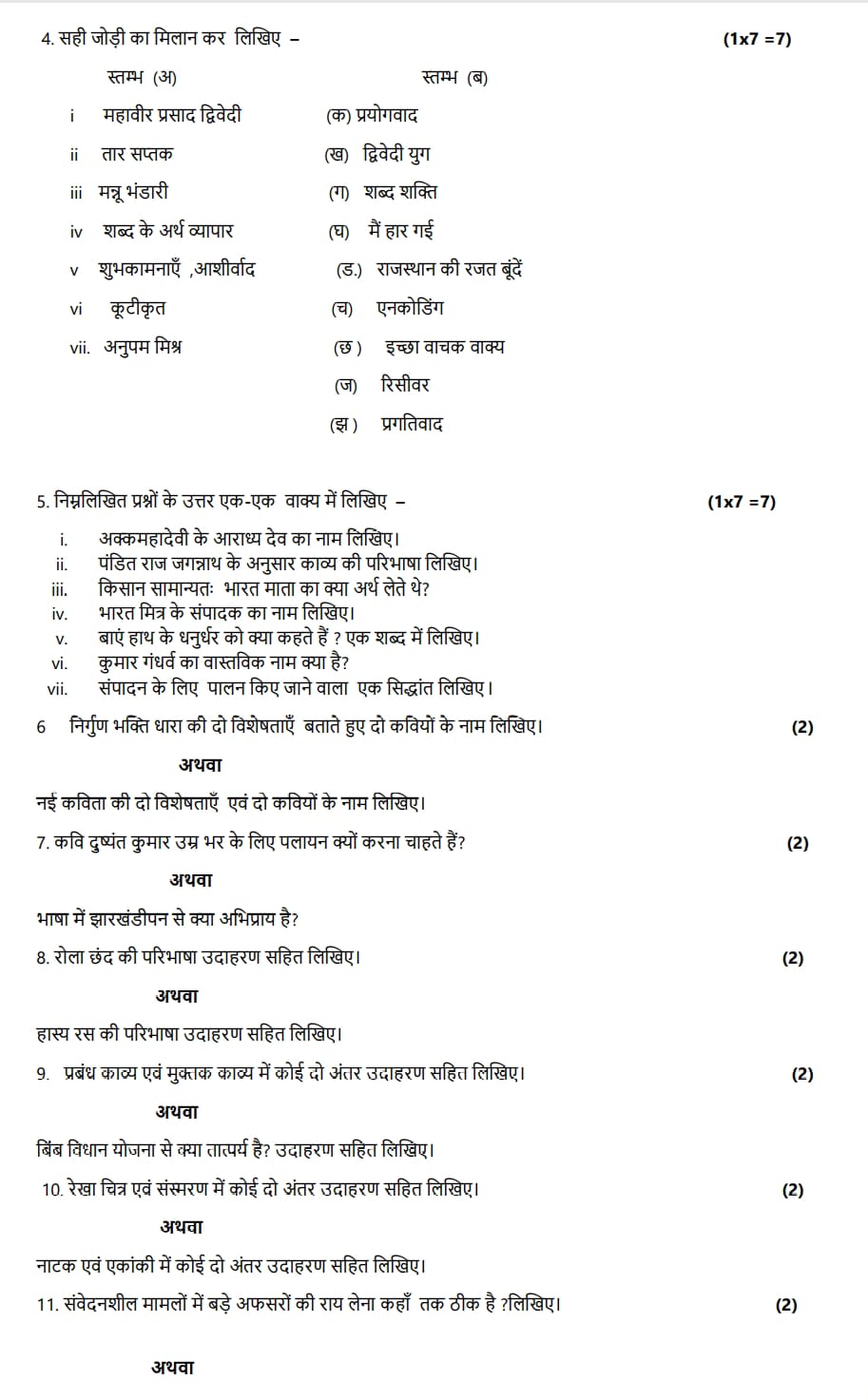 MP Board Class 11th Hindi Ardhvarshik Priksha Paper Pdf 2025