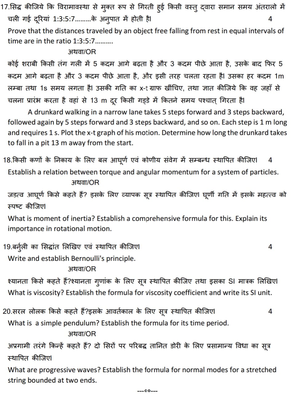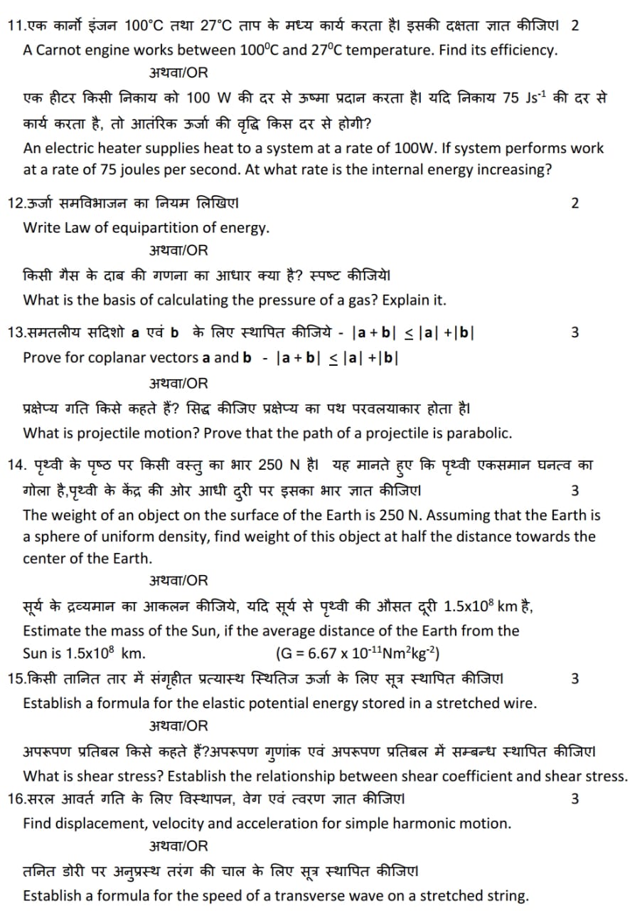 MP Board Class 11th Physics Ardhvarshik Paper पीडीऍफ़ Download 2025