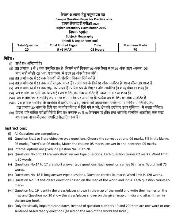 | आर्टिकल | MP Board Class 12th Geography Ardhvarshik Paper 2025 |