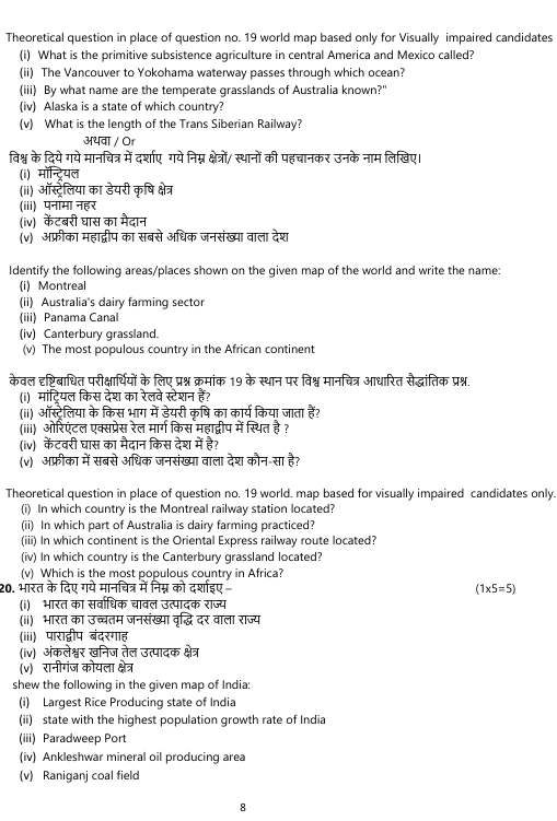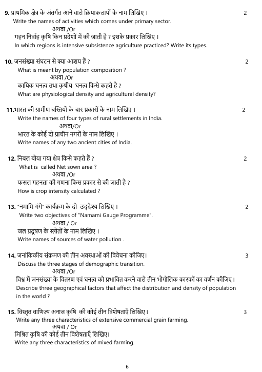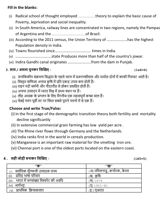 MP Board Class 12th Geography Model Paper 2025