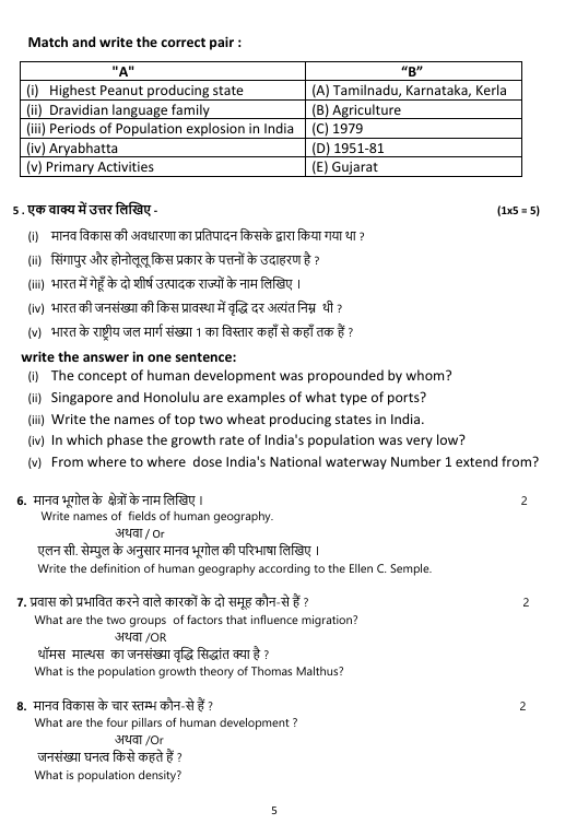 MP Board Class 12th Geography Ardhvarshik Paper Pdf Download 2025