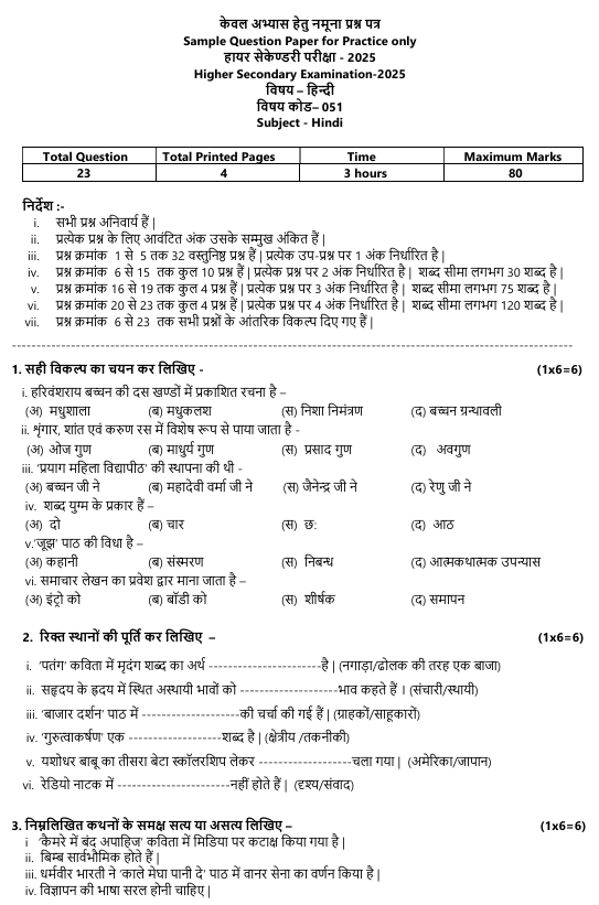 | एग्जाम नाम | एमपी बोर्ड हिंदी अर्धवार्षिक पेपर 2025 |